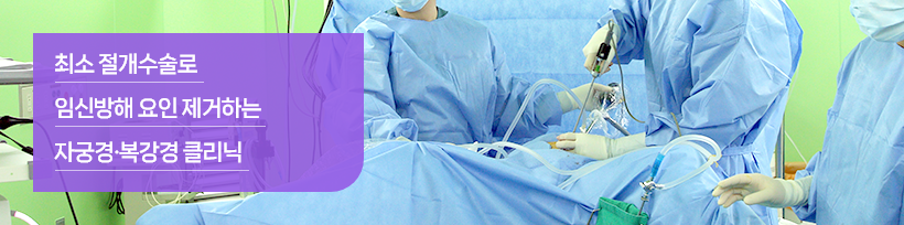 복강경 수술은 기존의 복부를 절개하는 개복술 대신에 5-10mm의 복부 미세절개만으로 수술하는 방법입니다. 복강경 방식으로 거의 대부분의 부인과 질환의 진단 및 치료가 가능하며 수술 후 일상생활로의 빠른 복귀가 가능하고 흉터가 거의 남지 않는 미용적 이점으로 현재는 보편적인 수술 방법으로 인식되고 있습니다.