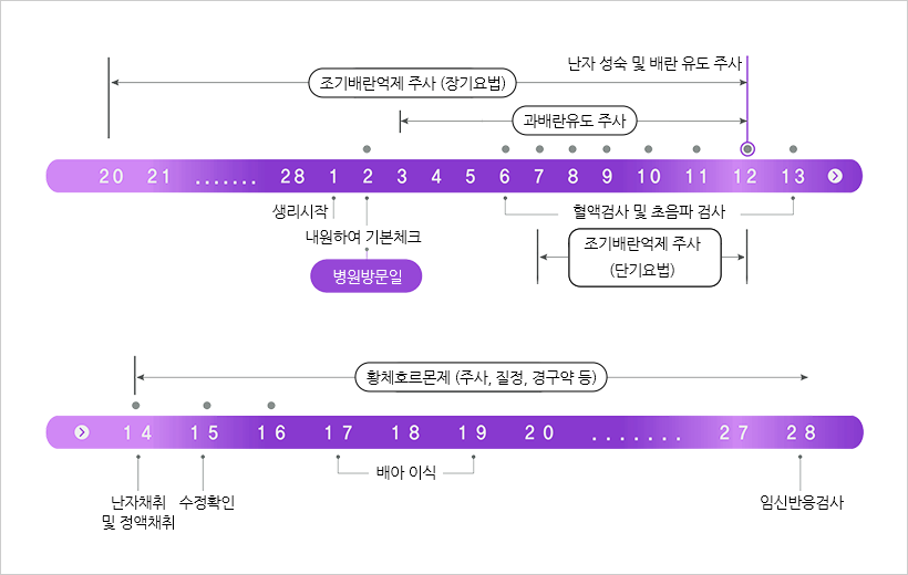 투여되는 황체호르몬 제제에는 근육주사, 질 좌약, 먹는 약 등이 있습니다. 임신이 확인 되더라도, 안전한 임신을 위해 8-9주 정도까지 황체호르몬제를 투여합니다.