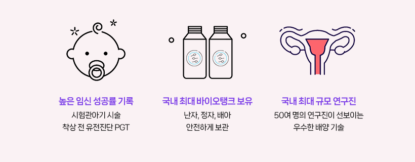 난자 및 수정란 동결, 일반정자 및 고환정자동결, 착상전유전자시술을 수행하며,